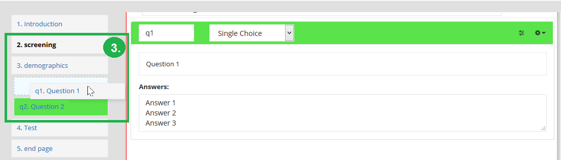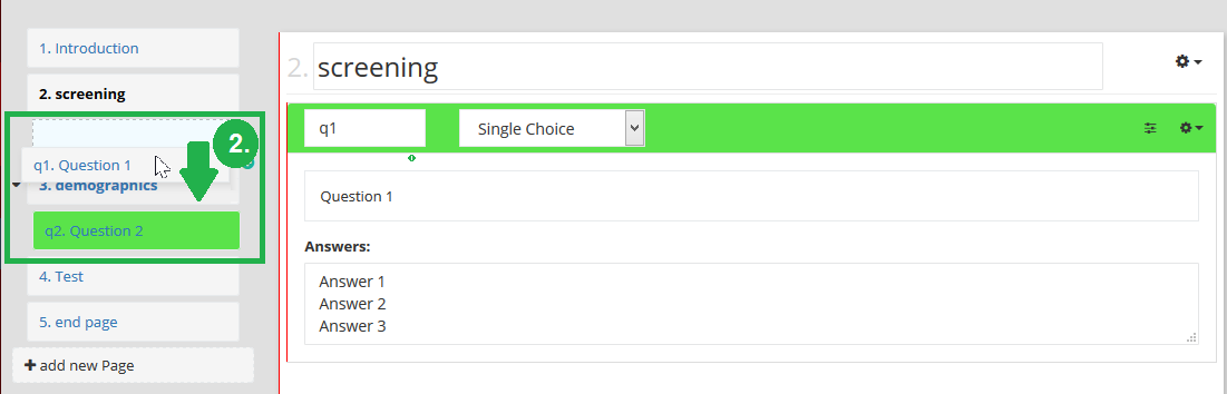 - Hover your mouse over the green question row until you see the drag&drop icon appear