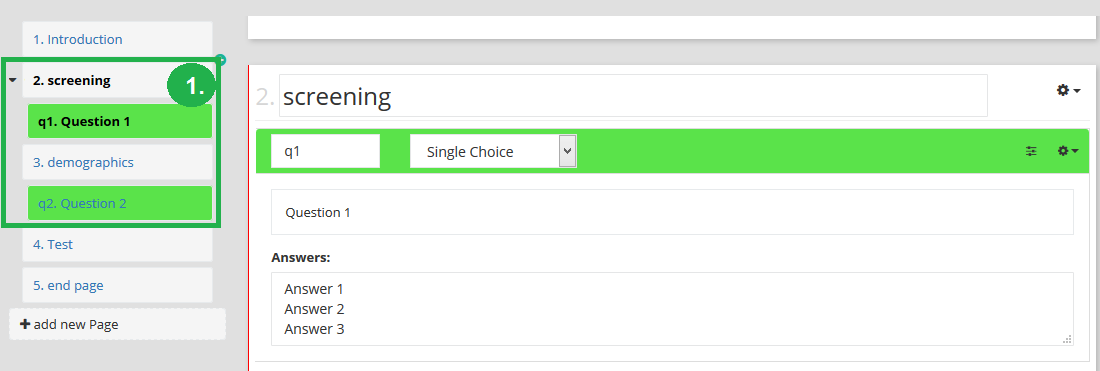 → Note: the question numbers are not automatically updated so will need to be manually changed. Questions can not only be moved within the current page, also to the other pages.