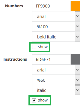 - To hide question numbers and/or instruction untick the box next to 'show'.