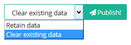 - To publish and clear data, click ‘Clear existing data’ in the dropdown beside the [Publish!] button