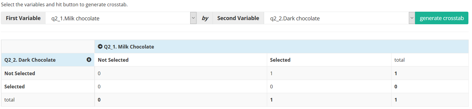 - To generate crosstab click [generate crosstab] button