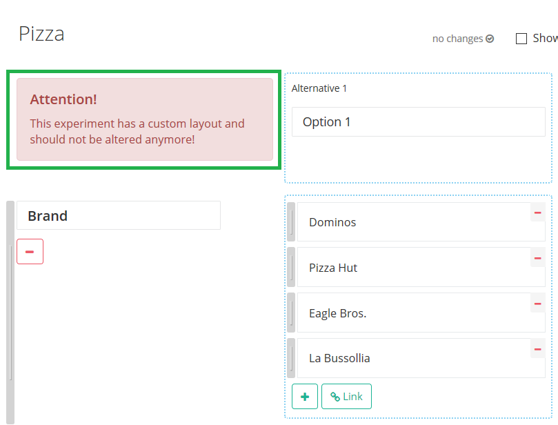 → Note: A warning is now displayed on the experiment page. All other changes should only be made via the template.