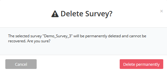→ Note: Surveys will be permanently removed and can not be re-instated.