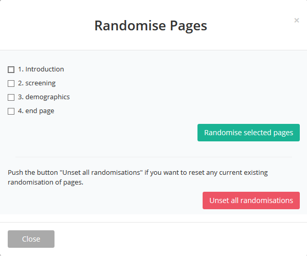 - Select the pages you like to randomise and click [Randomise selected pages