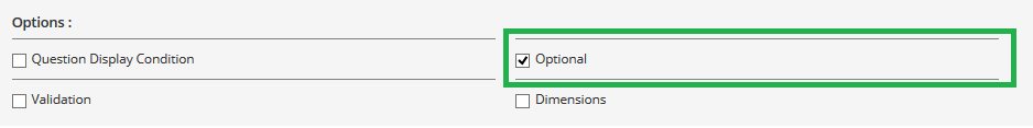 - To make question optional, click on the option icon on the far right-hand side of the element you want to edit and the Options with optional tick boxes will appear below