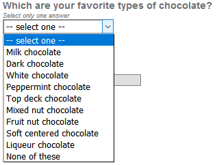 - Layout: dropdown - display answer choices in a single-drop down menu